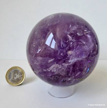 Eine brillante und farbintensive Amethyst Kugel aus Brasilien. Die Kugel ist rundum poliert und hat eine sehr hohe Qualität. Schöne Amethystkugeln sind selten geworden und am Mineralienmarkt sehr gefragt. Wir haben nur wenige Stücke pro Jahr in dieser beindruckenden Qualität.