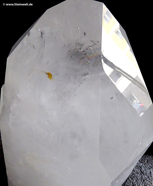 Ein wunderschöner und ästhetischer Einzelkristall aus Brasilien. Diese Kristallspitze ist eine echte Rarität, sie hat nicht nur einen schönen Habitus, sondern zeigt bei Lichteinfall einen schönen Regenbogen in ihrer Spitze. Ein echtes Highlight unter Kristall-Liebhabern. Mehr kann man sich von so einem mächtigen Kristall nicht wünschen, ein perfekter Mitbewohner.
