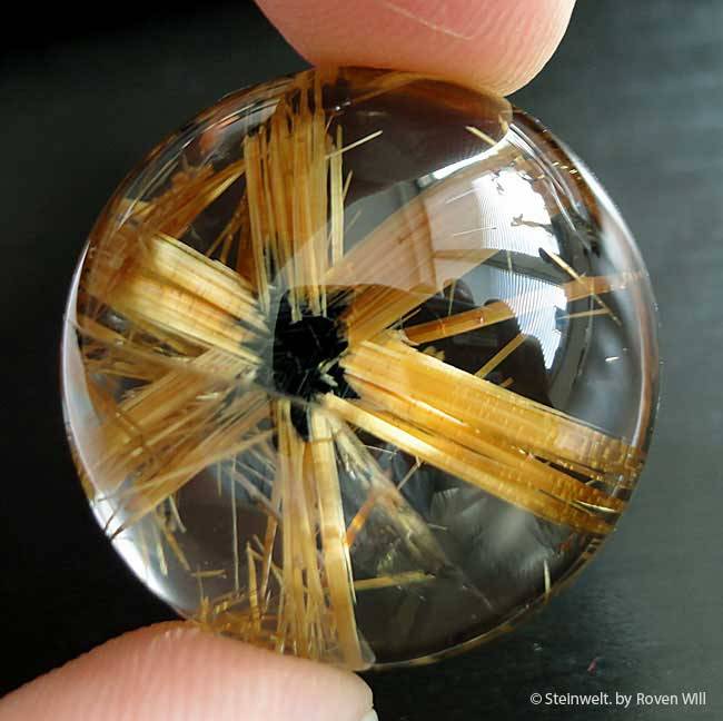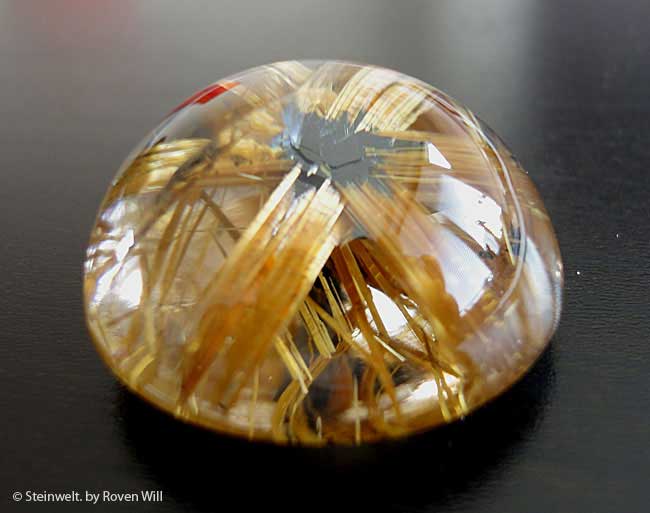 Sehr seltener und bestechend schöner Goldrutilstern aus Novo Horizonte, Brasilien. Dieser atemberaubend hochwertige und absolut brillante Stein lässt keine Wünsche offen. Sie können ihn als edlen Schmuck tragen oder als seltenes Sammlerstück in Ihrer Vitrine präsentieren. Wenn Sie dieses wunderbare Exemplar ins Sonnenlicht halten, eröffnet sich Ihnen ein einzigartiger Mikrokosmos aus unzähligen, funkelnden Goldrutilen. Jeder der schon einmal eines dieser Naturwunder in der Hand gehalten hat, weiss wovon wir schwärmen. Es gibt weltweit nur sehr wenig dieser wunderbaren Sterne. Ein echtes Sammlerstück und einzigartiges Mineral.