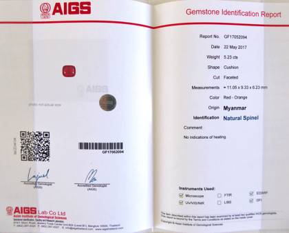 Sie können diesen wunderbaren und seltenen Stein als edlen Schmuck tragen oder als erlesenes Sammlerstück präsentieren. Auch als Wertanlage ist dieser Edelstein ideal geeignet. Der rote Spinell ist weltweit ein begehrter und gesuchter Farb-Edelstein. Ein echtes Naturwunder, von dem es nur wenige Exemplare in dieser brillanten Qualität gibt. Sowohl die Grösse als auch die Qualität machen diesen Edelstein zu einem echten Sammlerstück.