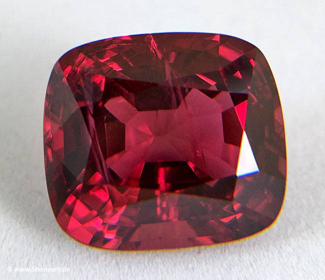 Bestechend schöner und farbintensiver roter Spinell. Ein im Kissenschliff facettierter Edelstein mit hoher Brillanz und von guter Qualität. Der Stein hat ein schönes Feuer, selbst bei wenig Licht funkelt er und besticht mit seiner Schönheit. Spinelle haben die Mohshärte 8 und zählen somit zur Gruppe der dritt härtesten Edelsteine. Sie eignen sich hervorragend für hochwertigen und langlebigen Schmuck. Unter der großen Farbenvielfalt der Spinelle gehört der rote und pinke Spinell zu den begehrtesten. Geschliffene Schmucksteine über 5 Carat in hoher Qualität sind extrem selten. Der angebotene Stein ist natürlich und unbehandelt.